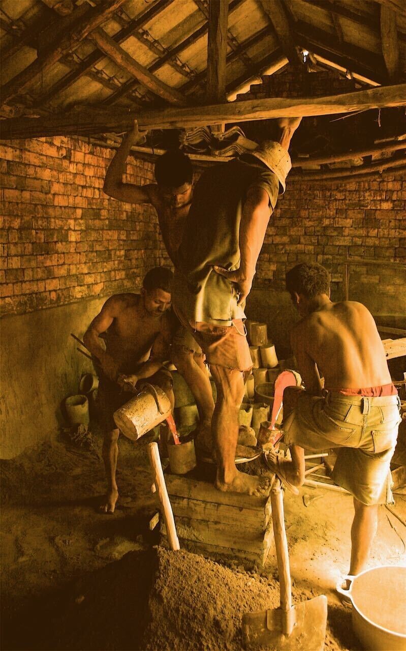 "Now what we have below is thirsty work. That's molten aluminium, but it's too hot to wear safety boots - even if they had any.